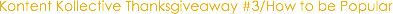 For their third Kollective Thanksgiveaway contest, Kontent Films gave away autographed copies of How to be Popular to those that could channel their inner 15-year-old. Details here: Congrats to all the winners!